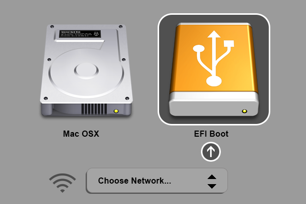 For Apple macOS based systems iMAC/Pro, MAC Book/Pro/Air/Mini press and hold "ALT" key while powering on the MAC. Select "EFI Boot" to boot further |